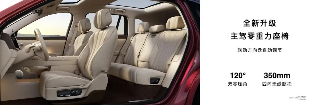 二排配备零重力座椅,120°双零压角搭配水平自适应扶手,隐藏杯架、66W快充与手机位俱全。三排腿部空间达810mm,头部937mm,宽敞不将就。