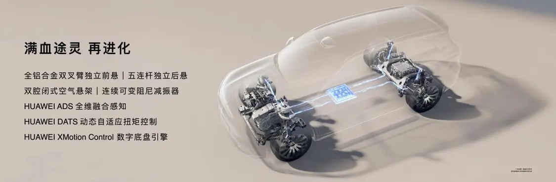 全新问界M7搭载华为途灵平台,集成HUAWEI ADS全维融合感知、HUAWEI DATS动态自适应扭矩控制与HUAWEI XMotion Control数字底盘引擎等核心技术。全系标配全铝合金双叉臂前悬与五连杆独立后悬,全新升级双腔闭式空气悬架,支持5档高度调节,调节范围80mm,调节速率提升30%,可实时识别路况自适应平衡车身高度。动扭矩分配控制防打滑,打滑风险降低61%。动态扭矩调节防颠簸,减振器阻尼调节100次/秒,过路障冲击感降低40%,舒适性提升18%。